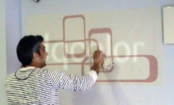 vinilo en la pared donde pensamos colocarlo para asegurarnos que